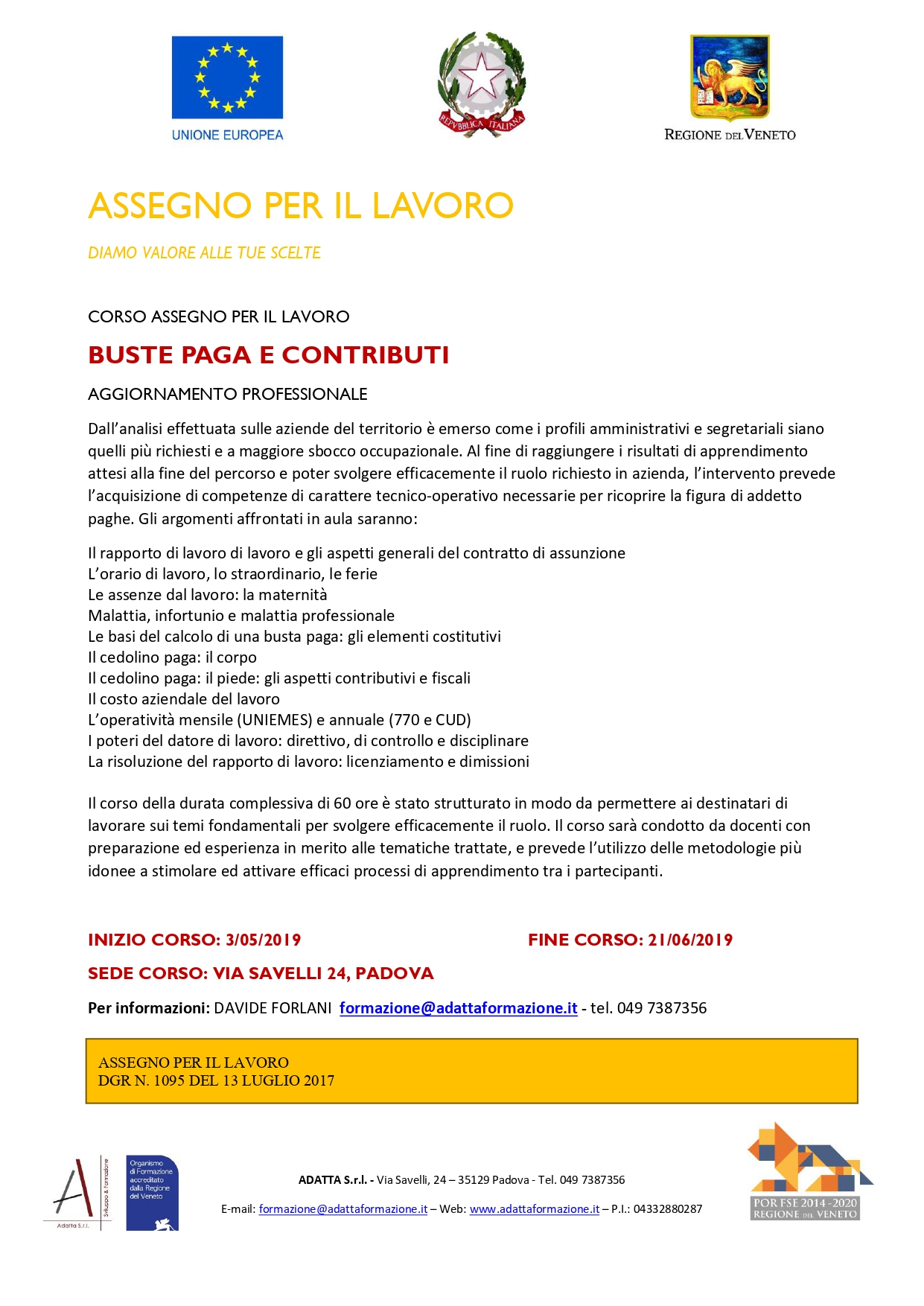 Corso Assegno per il Lavoro