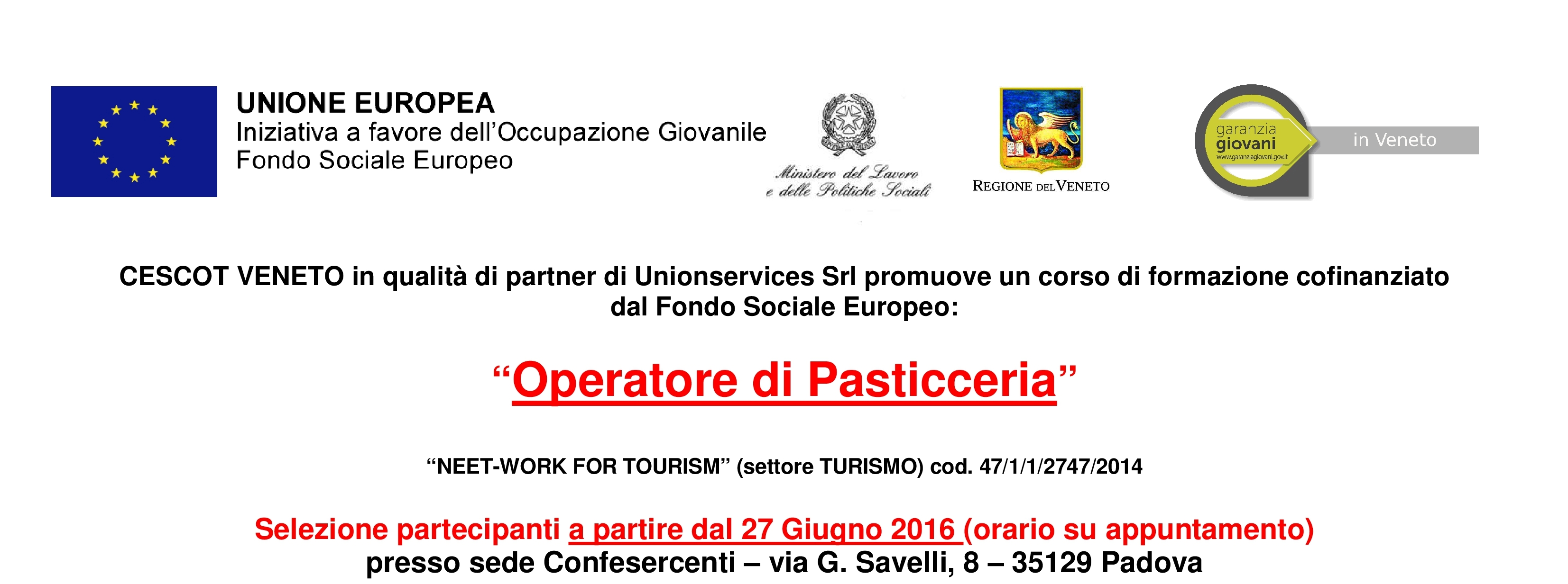 Operatore di Pasticceria. Fondo Sociale Europeo.