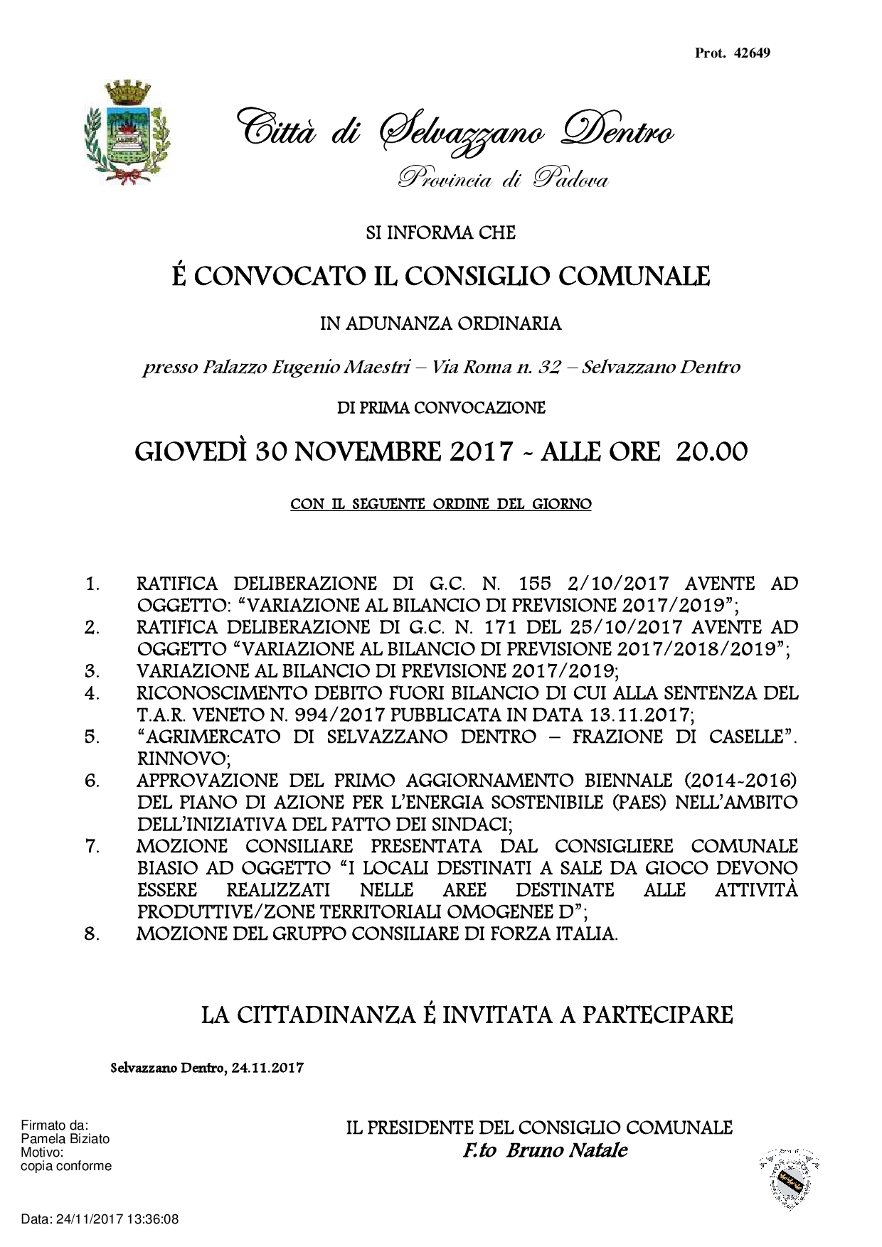 CONSIGLIO COMUNALE 30/11/2017