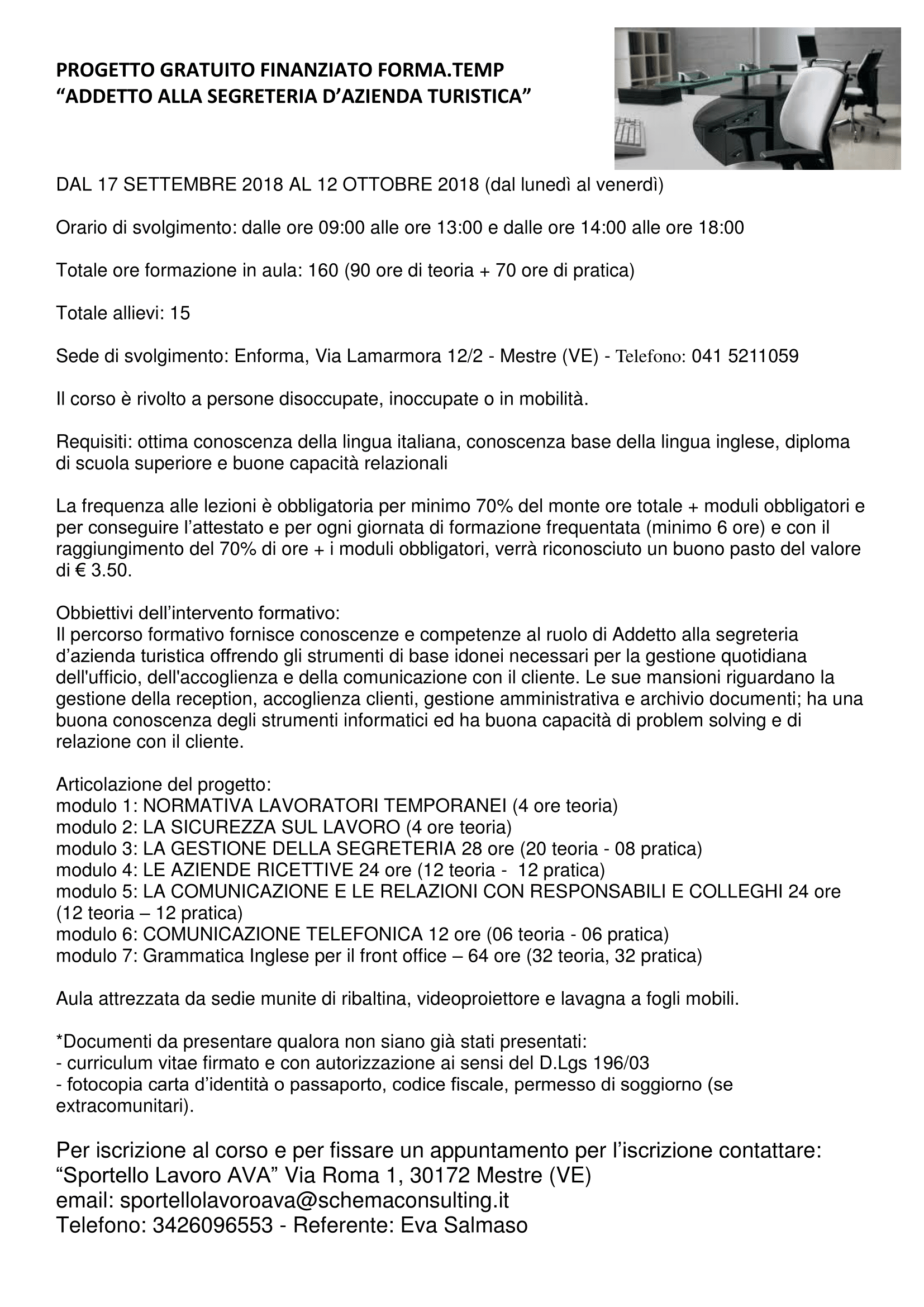 Corso gratuito “Addetto alla segreteria d’azienda turistica“