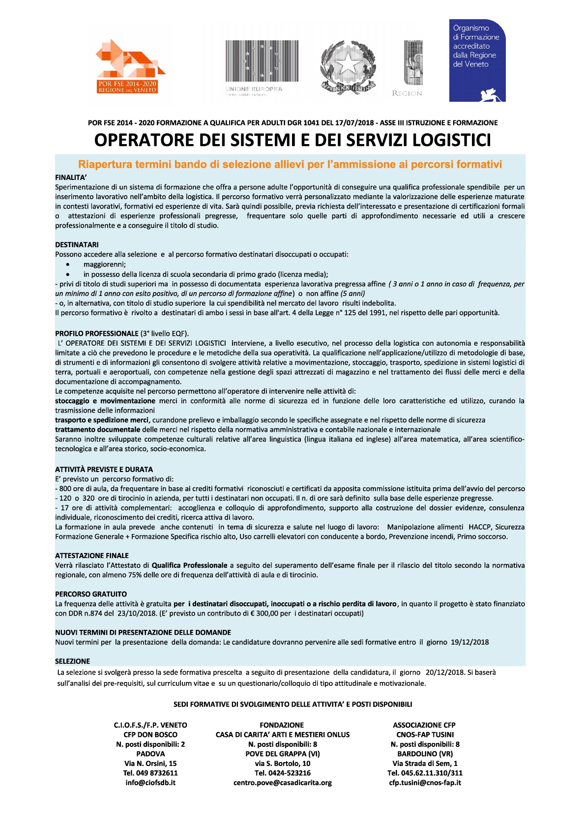 Corso: Operatore dei Sistemi e dei Servizi Logistici