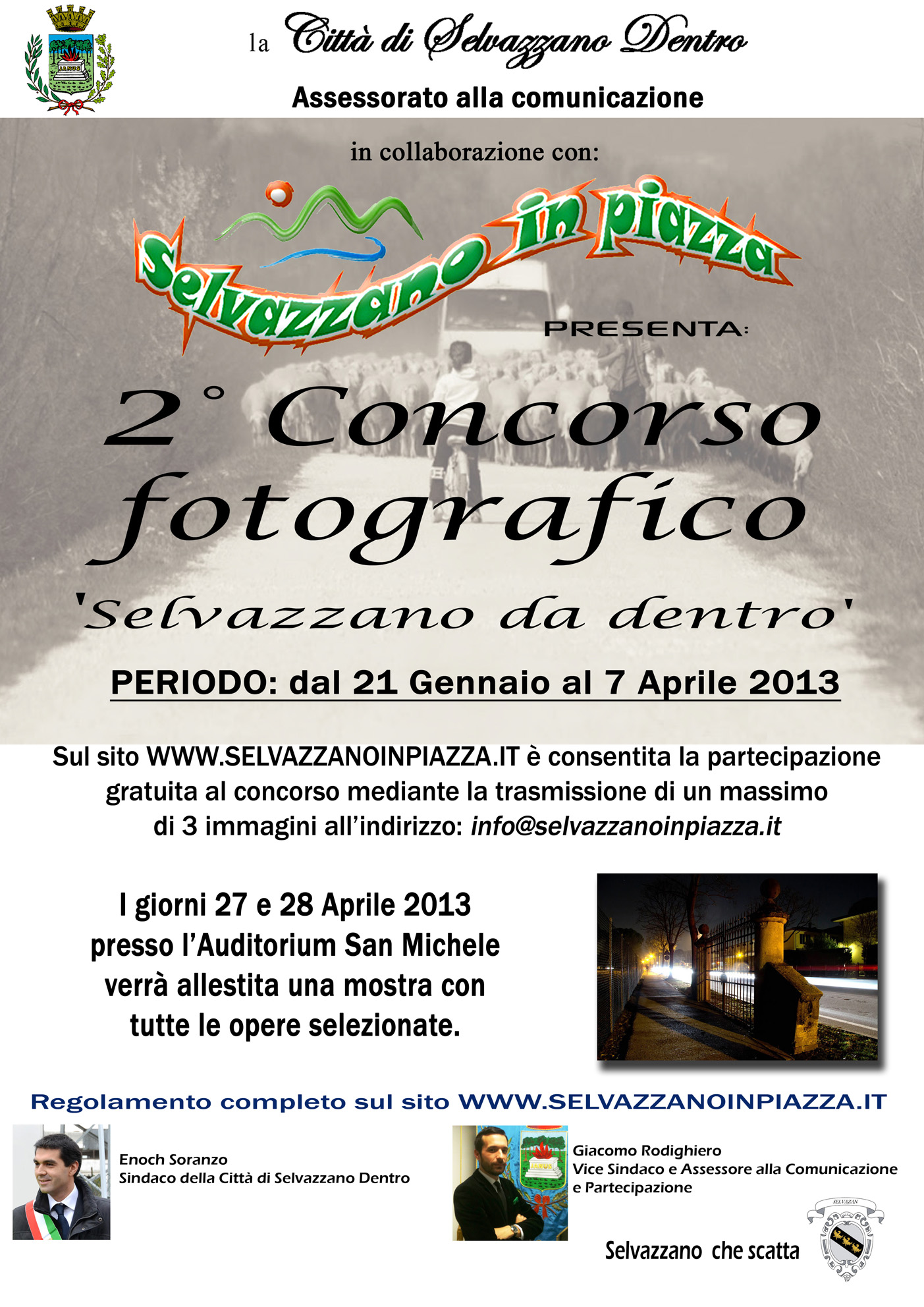 Regolamento completo e scheda iscrizione al concorso, su www.selvazzanoinpiazza.it